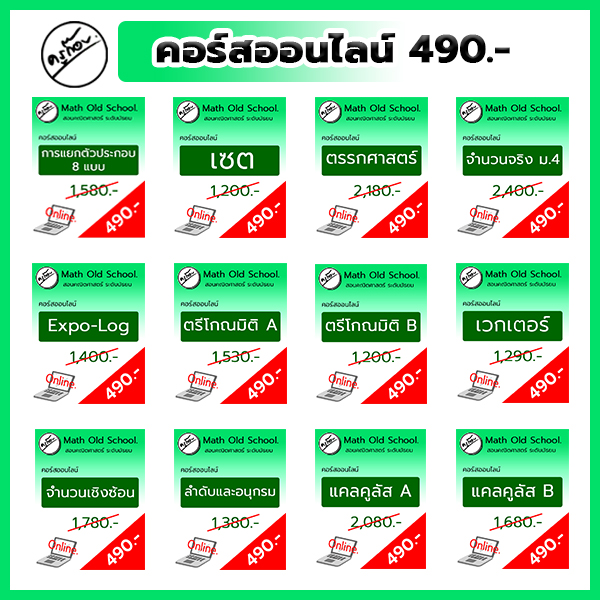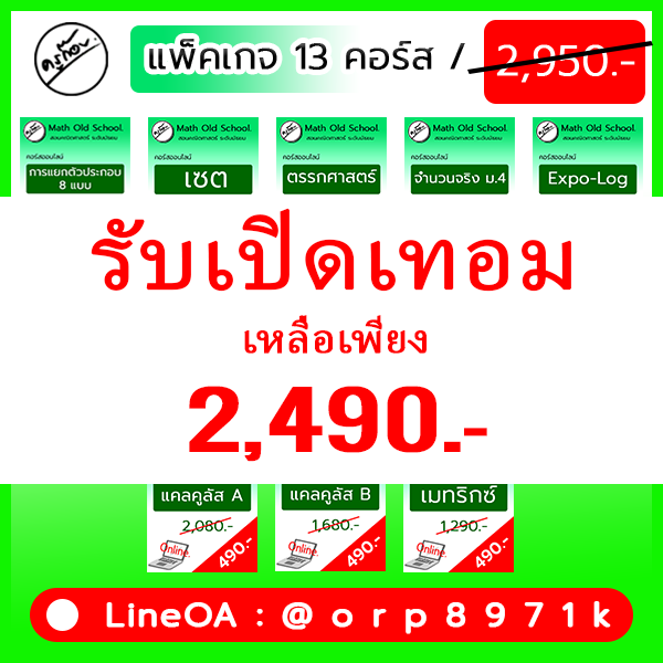 จำหน่ายคอร์สเรียนออนไลน์ และ รับสอนพิเศษวิชา คณิตศาสตร์ มัธยม ติวสอบตัวต่อตัว สอนสดที่บ้านนักเรียน หรือ ติวสอบแบบสอนสดผ่าน ZOOM เดี่ยว / กลุ่ม / เทอม ประสบการณ์สอน 16 ปี เน้นพื้นฐาน เรียงจาก เนื้อหา-ตัวอย่าง-แบบฝึกหัด-แนวข้อสอบ ดูแลนักเรียนเหมือนลูกหลาน ติดตามเนื้อหา เตรียมการสอนให้ทันกับเหตุการณ์ที่จะสอบ ปรับทัศนคติให้เข้มแข็งอยู่เสมอ สนใจเรียนพิเศษกับครูก๊อบ สอบถามเพิ่มเติมทางไลน์ LineOA : @orp8971k